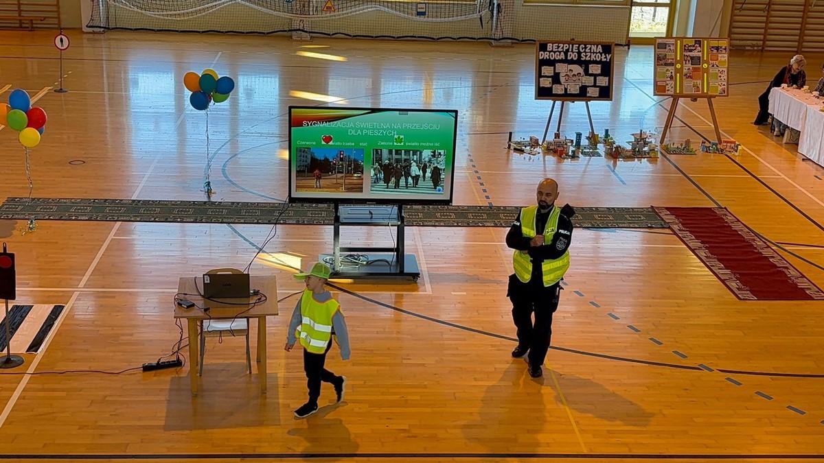 Pan Policjant Maciej Kamiński 👮‍♂ z Komisariatu Policji w Starym Sączu przeprowadził zajęcia teoretyczne i praktyczne na temat zasad poruszania się po drogach oraz bezpiecznego zachowania w szkole.