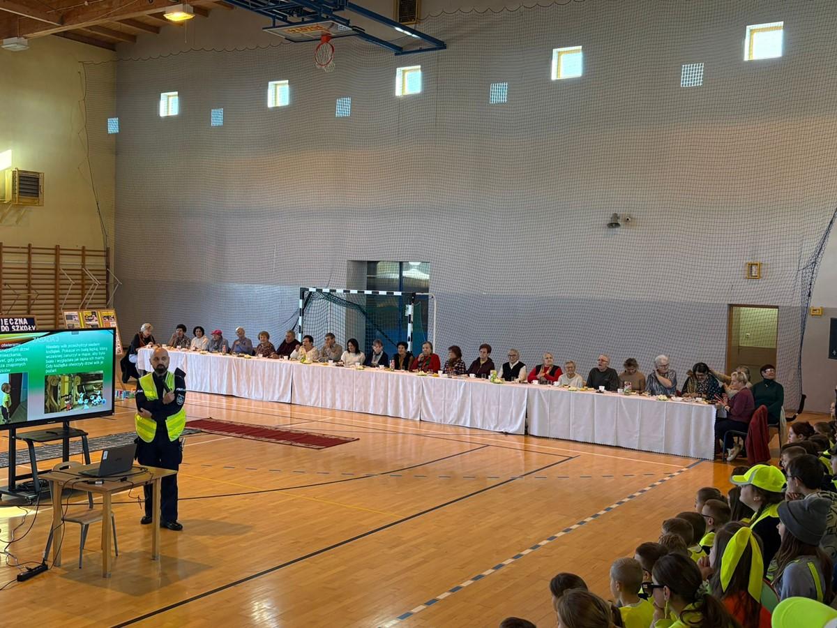 W spotkaniu uczestniczyli również seniorzy z Placówki Dziennej Opieki dla Osób Starszych w Podegrodziu wraz z opiekunami 🤝, do których skierowano działania edukacyjne dotyczące bezpieczeństwa pieszych w ruchu drogowym oraz bezpiecznego przechodzenia przez pasy 🚶‍♀➖🚶‍♂.