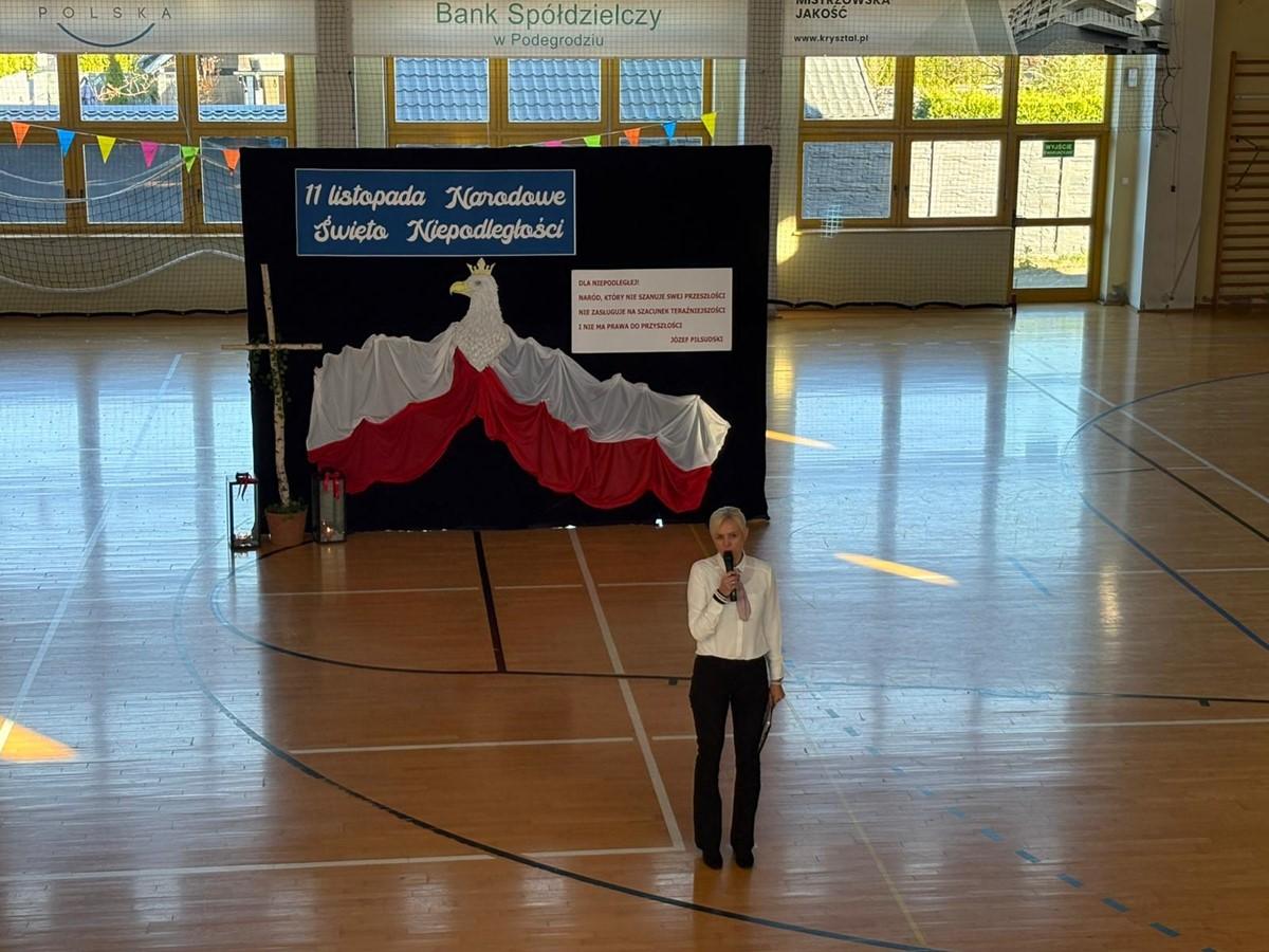 Na zakończenie głos zabrała pani wicedyrektor Sabina Laciuga, która podziękowała młodzieży przygotowującej program artystyczny pod kierunkiem pani Marietty Gołąb, pani Patrycji Bugajskiej, pani Marty Zaweracz oraz pana Marka Wastaga, a także wszystkim nauczycielom i uczniom zaangażowanym w organizację uroczystości. W swoim wystąpieniu podkreśliła znaczenie kształtowania postaw patriotycznych oraz pielęgnowania pamięci o historii naszej Ojczyzny. 🇵🇱