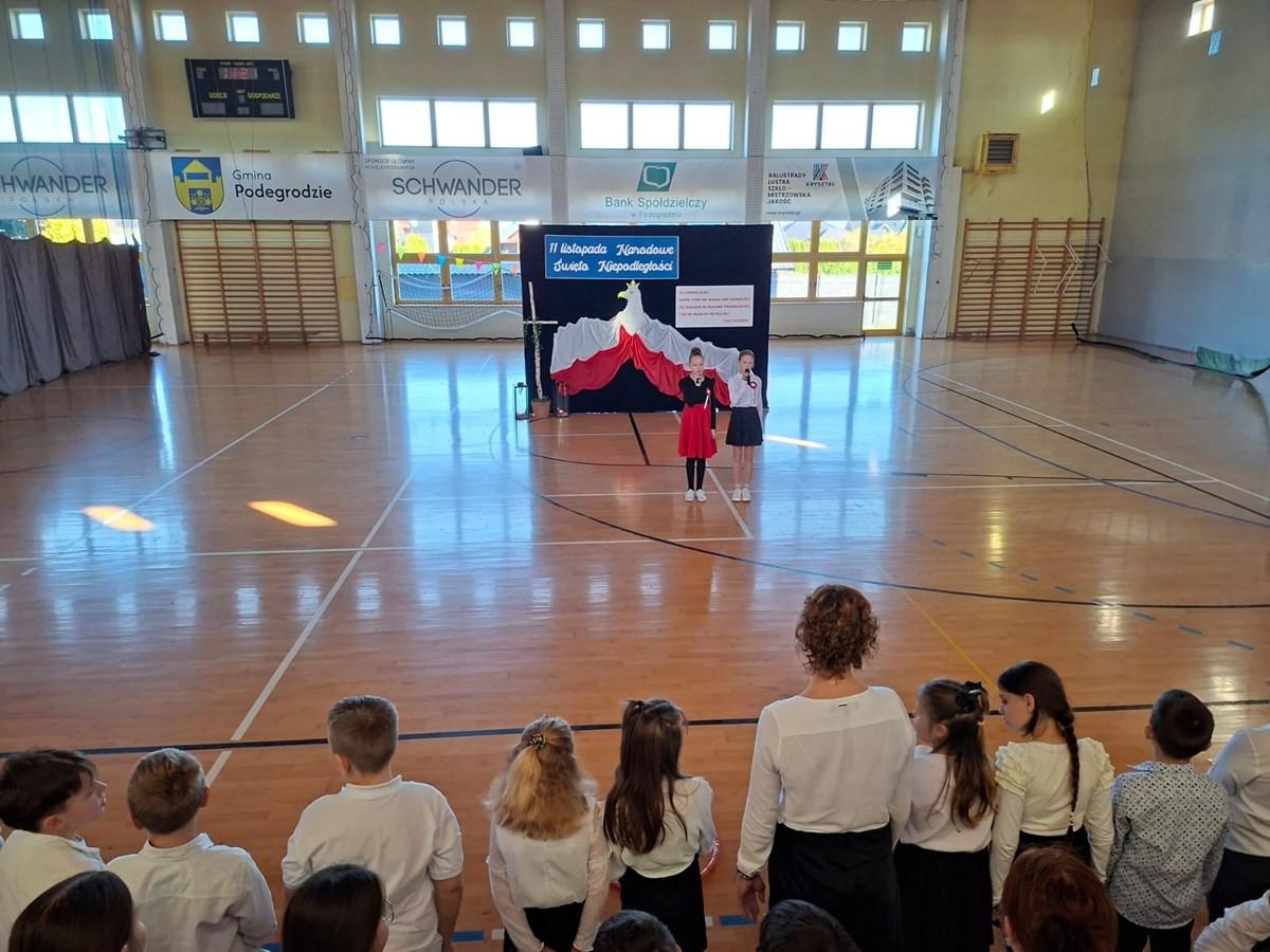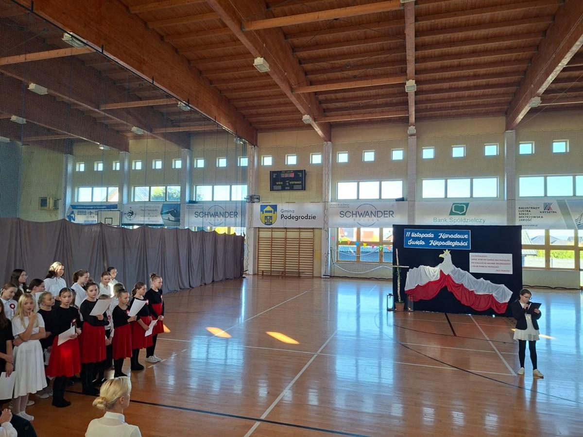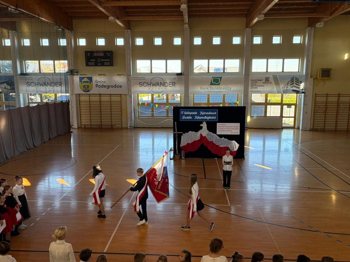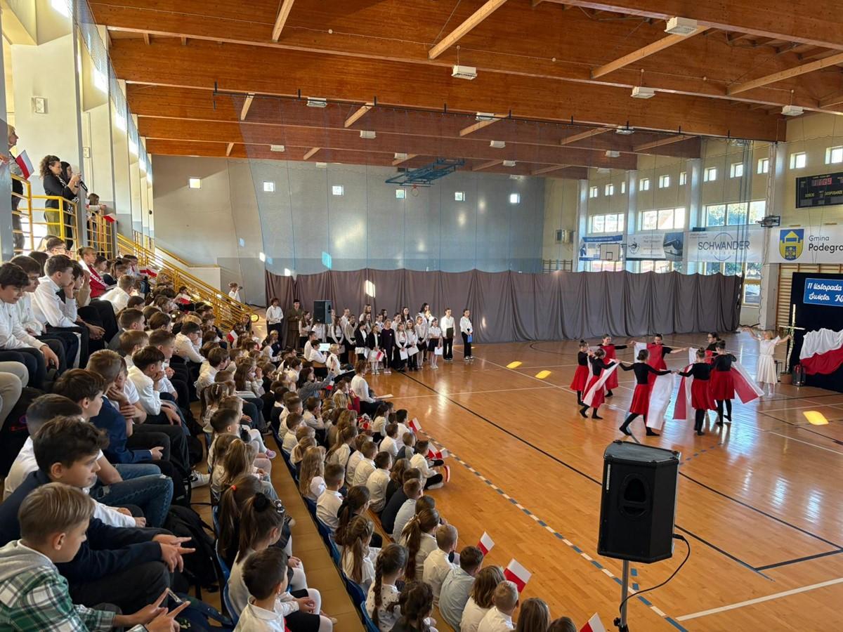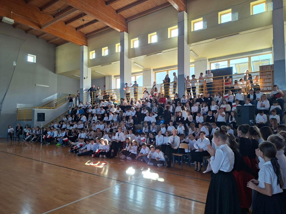 7 listopada w naszej szkole odbyła się akademia upamiętniająca Narodowe Święto Niepodległości. Uroczystość miała podniosły charakter — uczniowie, odświętnie ubrani, z uwagą wsłuchiwali się w słowa przybliżające historię odzyskania niepodległości przez Polskę.