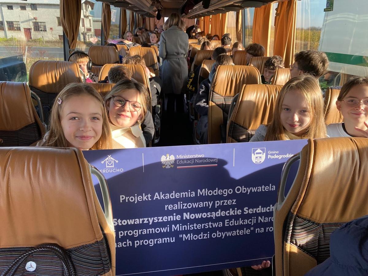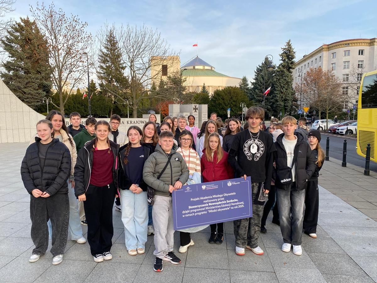 W dniach 13–14 listopada 2025 r. uczniowie klas siódmych i ósmych wzięli udział w wyjątkowej wycieczce do Warszawy, zorganizowanej w ramach projektu Akademia Młodego Obywatela. Dwudniowy wyjazd pozwolił uczniom nie tylko poznać najważniejsze miejsca stolicy, lecz także poszerzyć wiedzę o historii i kulturze Polski.