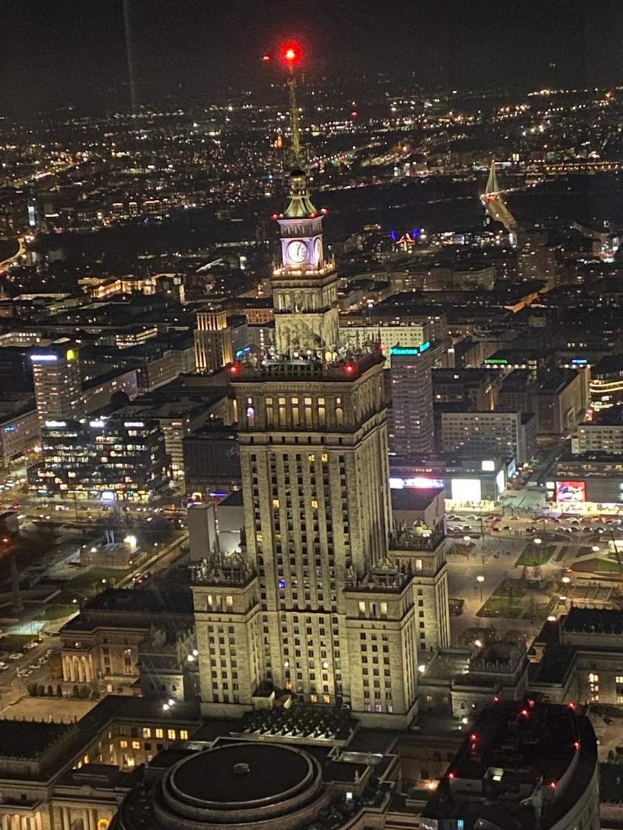 Zwieńczeniem dnia był emocjonujący wjazd na taras widokowy Varso Tower. Z wysokości ponad 200 metrów uczniowie podziwiali panoramę nocnej Warszawy – dla wielu była to najbardziej niezapomniana chwila wyjazdu.