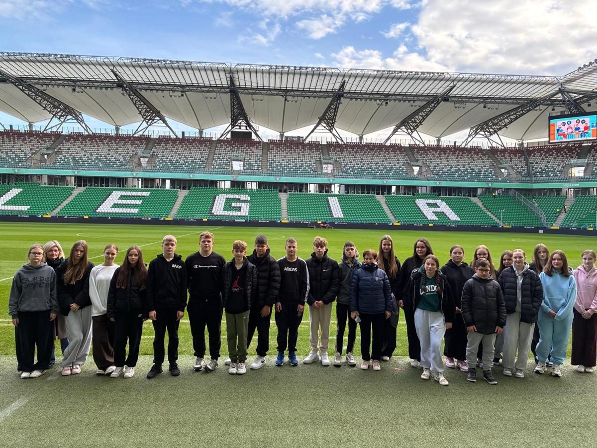 Drugiego dnia wycieczki uczniowie rozpoczęli od zwiedzania stadionu Legii Warszawa, gdzie poznali kulisy funkcjonowania klubu oraz miejsca zwykle niedostępne dla kibiców.